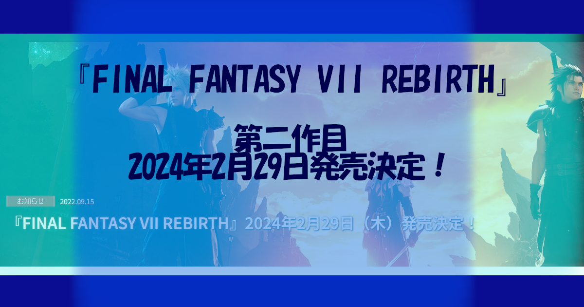 『FINAL FANTASY VII REBIRTH』三部作のうち、第二弾が2024年2月29日に発売することが発表された。